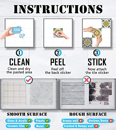 Durevole - Questi adesivi per piastrelle sono realizzati in PVC, un materiale durevole e resistente che resisterà alla prova del tempo. Le nostre decalcomanie per piastrelle sono molto resistenti, impermeabili e facili da pulire. Puoi rimuovere facilmente la decalcomania in qualsiasi momento senza lasciare residui.
