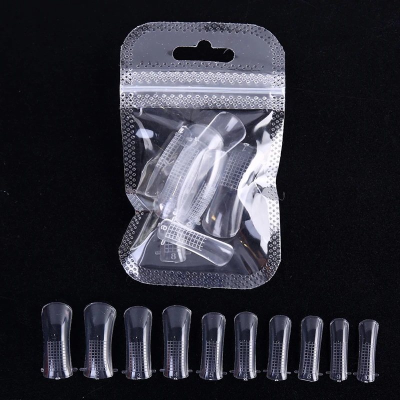 20pcs Clear Nail Forms Acrylic False Fake Nails Full Cover Quick Building Mold Tips Dual Forms Nail Finger Extension