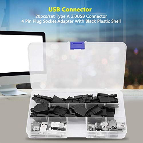 20Pcs/set Tipo A 2.0USB Connettore Adattatore per presa a 4 pin con guscio in plastica nera