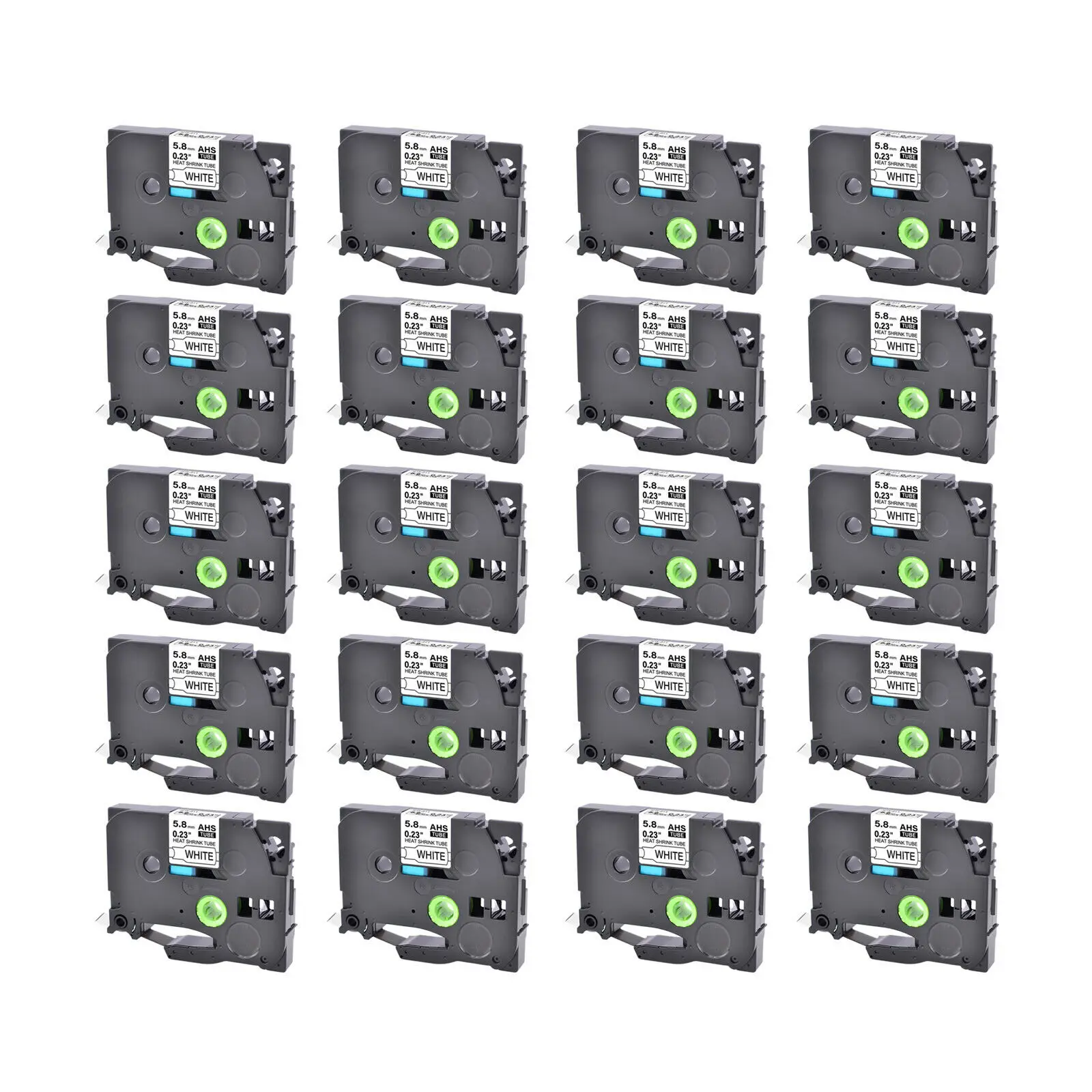 20PK Compatible with Brother P-Touch HSe-211 Heat Shrink Tube Replacement Black on White 5.8 mm x 1.5 m Tape Cassette Label