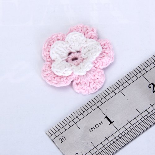 20pz 2 Strati Fiore Uncinetto Fatto A Mano Appliques Mestiere Di Cucito - Rosa E Bianco