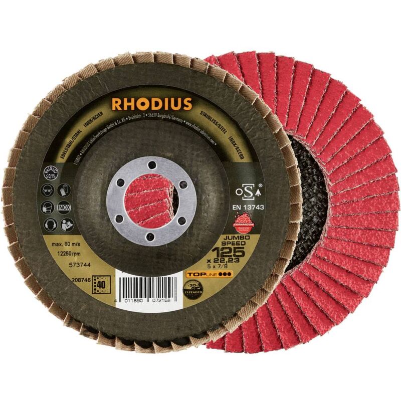 Dettagli tecnici Contenuto 5 pz. Dimensione dei grani 40 Dimensione, Ø 125 mm Dimensioni (Ø) 125 mm Tipo prodotto Disco con falde Ø foro 22.23 mm Rhodius Jumbo SPEED EXTENDED disco abrasivo a ventaglio 125 x 22,23 mm K40 INOX obliquo Taglio rapido e aggressivo con un'elevata capacità di taglio grazie all'ampia superficie di appoggio delle lamelle extra lunghe. Testo tradotto automaticamente Punti di forza e dettagli Elevata potenza di taglio grazie alla grana di ceramica Particolarmente adatto per acciai temprati, superfici di copertura e titanio Particolarmente adatto per bordi affilati Incluso nella consegna 5 dischi abrasivi a ventaglio ESTESI Rhodius Jumbo SPEED 125 x 22,23 mm ACCIAIO INOX obliquo Requisiti di sistema null