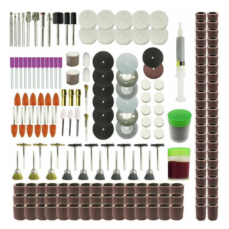 Utensili abrasivi, accessori per levigatura, levigatura, lucidatura, incisione, testa per smerigliatrice Dremel, utensili rotanti, dischi abrasivi, 217 pezzi Caratteristiche: 1. Utile e pratico. 2. Puoi usarlo per l'incisione lucida fai-da-te, il taglio, la lucidatura di legno/metallo, la molatura, la rimozione della ruggine metallica, ecc. 3. Facile e sicuro da usare e conservare. 4. Può essere utilizzato per la macchina per intagliare la giada, il frantoio, il mulino sospeso. Il pacchetto include: Accessori per utensili rotanti p>