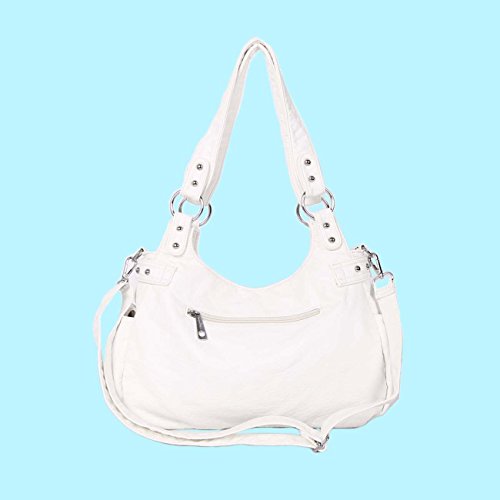 21KBARCELONA Angelkiss - Borsa a mano, a spalla, a tracolla, ampia capacità per ragazze, donne, in pelle, doppio strato, 5 tasche esterne, 3 tasche interne, AK19244/2, bianco (Bianco) - AK19244/2
