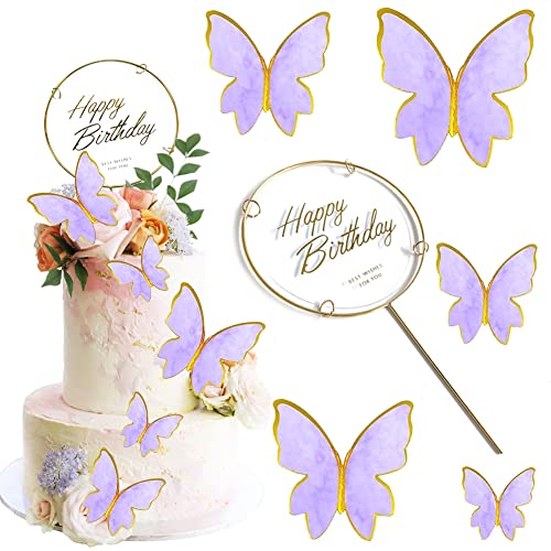 SICUREZZA DEL MATERIALE La decorazione per torta di compleanno è realizzata con telaio in metallo e piastra in acrilico, e gli adesivi decorativi a forma di farfalla sono realizzati in carta pulita, che può decorare in modo sicuro torte e altri alimenti come gelati, dessert, biscotti, panini, ecc. Rendi le tue torte più raffinate e interessanti. Nota: non commestibile, unilaterale.
