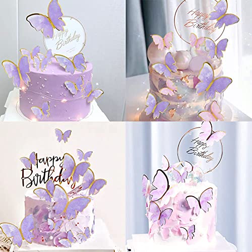 21Pcs Cake Topper Farfalla Decorazione, Con Happy Birthday Banner Topper, Farfalla Cake Topper Decorazione Kit, Torte con Farfalle di Carta, Per Compleanni, Matrimoni e Feste Cake Decoration (Viola)