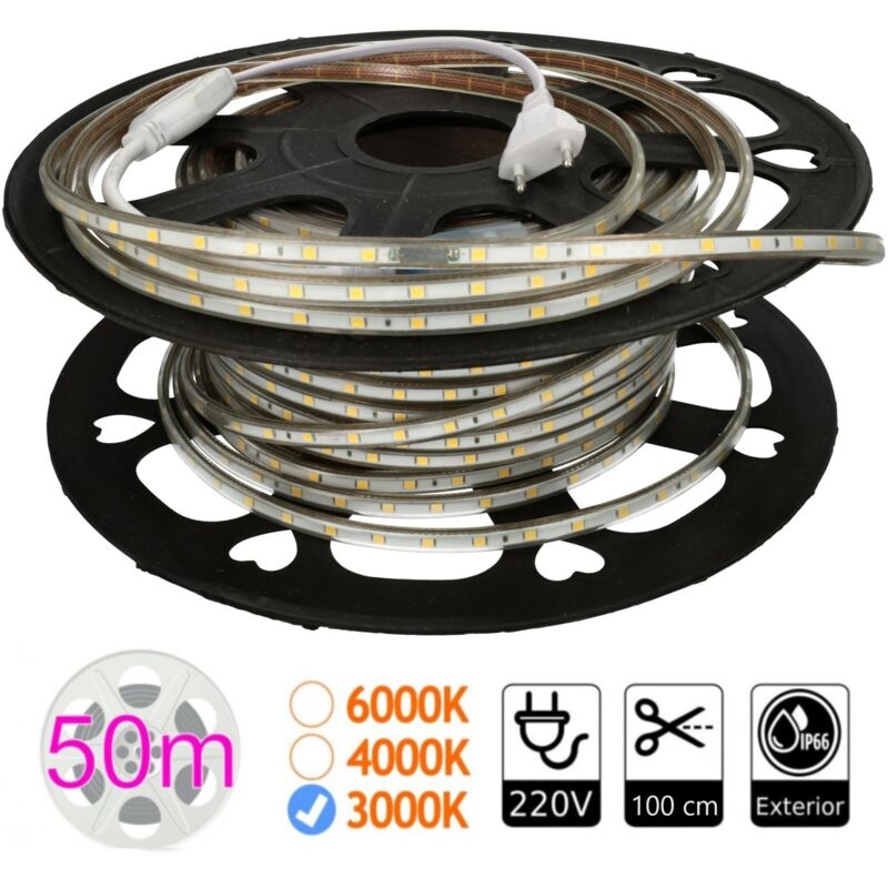 Strip LED 220V 3000K ESTERNO 60 LED per metro bobina 50 metri. La striscia LED da 3000k 220V è collegabile direttamente a 220 V attraverso il raddrizzatore a che converte la corrente alternata dalla rete alla corrente continua. La connessione viene effettuata dalla pressione quando si inchioda il connettore metallico nella striscia all'altezza dei cavi conduttivi. Include 4 raddrizzatori e 4 spiedini di connessione. È fabbricato per l'installazione sia nell'interno e nell'esterno, con una protezione IP66, tranne i connettori che sono IP44, sebbene debitamente impermeabili possano essere messi fuori. < /p> sta tagliando ogni 100 cm . Tagli chiaramente marcati e con un buon margine. La striscia è a bassa potenza, 5w/m e una buona prestazione: 80lum/w . Strip LED ha un PCB di alta qualità. Il PCB è bianco ed è completamente coperto di protezione esterna. È ideale per strutture industriali, luoghi per il tempo libero, hotel, ristoranti, parchi, motivi di Natale, ecc ... La striscia a LED