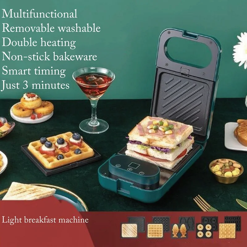 220V Electric Sandwich Maker Timed Waffle Maker Toaster Baking Multifunction Breakfast Machine takoyaki Pancake Sandwichera Tool