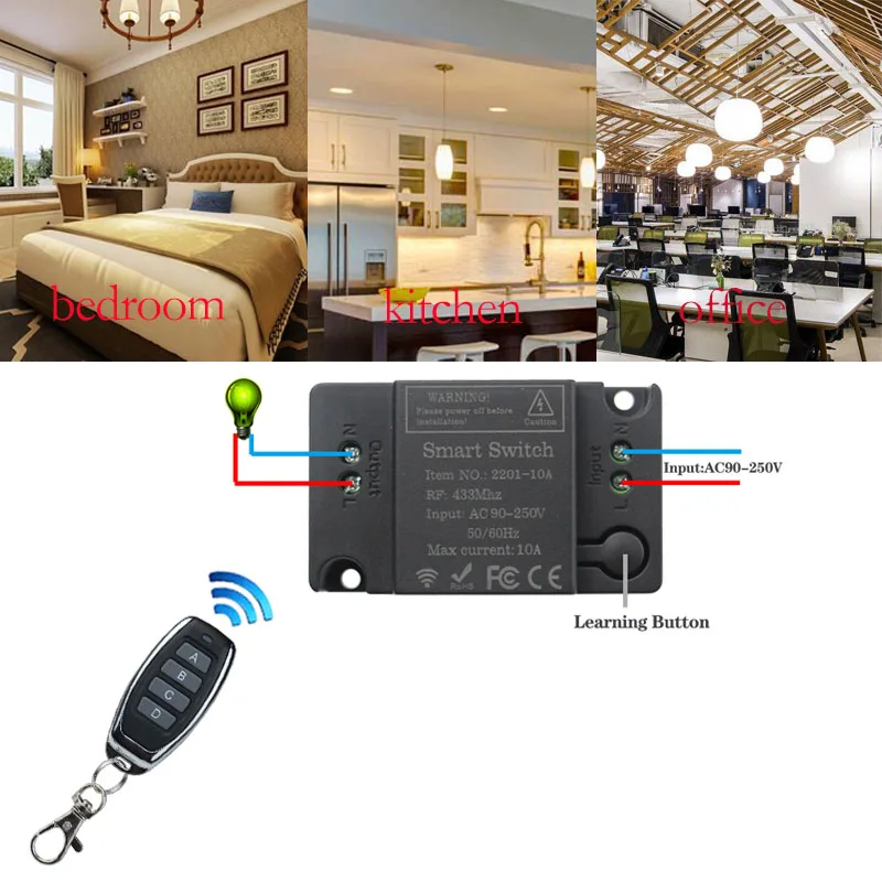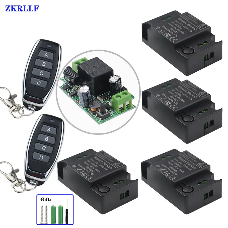 220V Lamp Wireless Remote Control Switch A/B/C/D 4 key 433 MHz transmitter +110V receiver For Living room Led Lights Bulb DIY