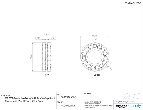 FAG 222070 Cuscinetto a rulli sferici, foro diritto, gabbia d'acciaio, gioco normale, metrico, ID 35mm, 72mm OD, larghezza 23mm