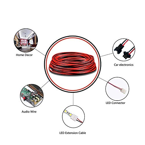 22AWG Filo Elettrico,0,33mm2 Filo di Rame Stagnato,Cavo a 2 Fili in PVC per Connettori Striscia LED/DIY 20 Metri(10 Metri Nero+10 Metri Rosso)