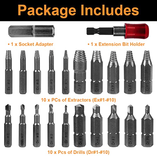 22Pcs Damaged Screw Extractor Drill Bit Broken Screw Remover Extractor Tools Set HSS Drill Bit Bolt Stud Stripped Screw Remover