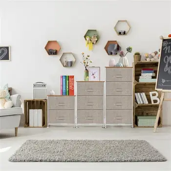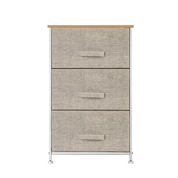 2/3/4-Tier Dresser Tower Fabric Drawer Organizer With Easy Pull Nightsta With Metal Frame Wooden Tabletop For Living Room