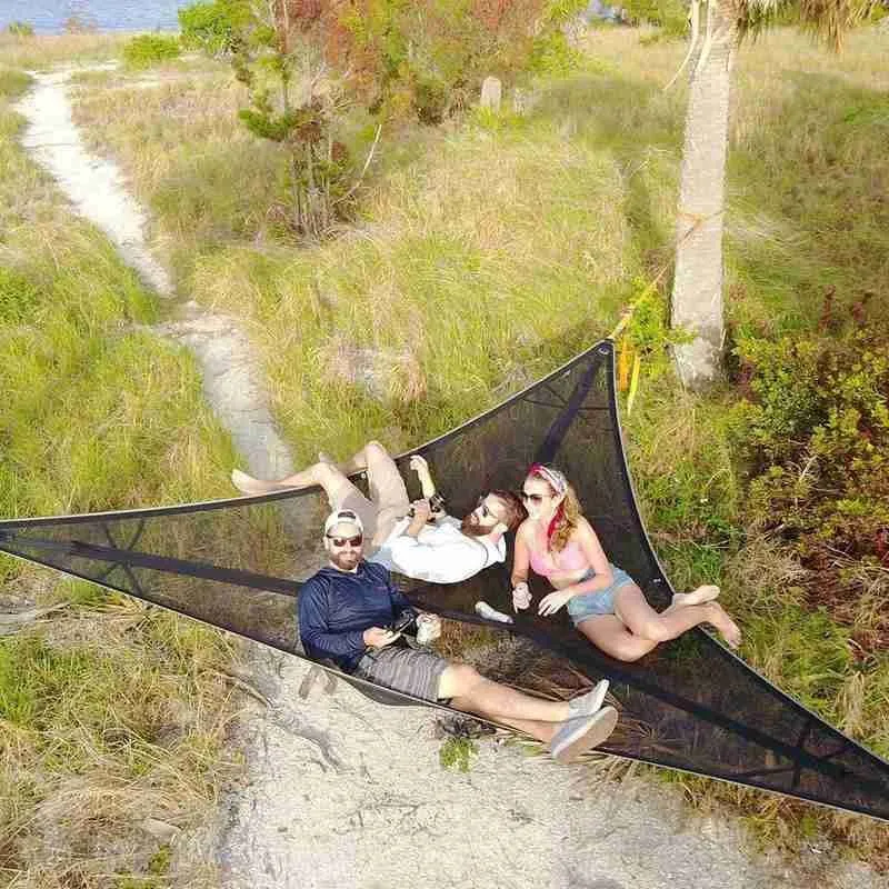 2/3M Camping Hammock Triangle Aerial Mat Multi-Person Hammock Net Outdoor Portable Hanging Bed Garden Furniture Freeshipping