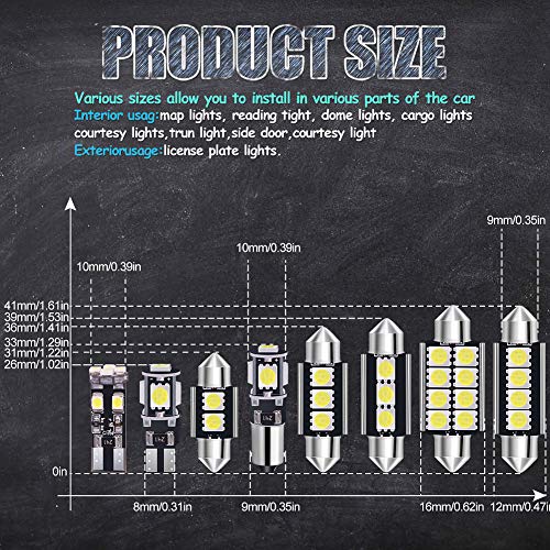 √【Set di lampadine a LED】-- 6000K di xeno bianco, queste lampadine si adattano a molte posizioni diverse: lampada della stanza, lampada della mappa, posizione, lampada di svolta, lampada numero, fanale posteriore, lampada per bagagli, lampada da lettura, lampada posteriore, indicatore di direzione, licenza luce targa ecc.