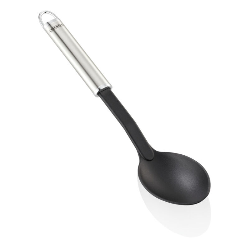 Design elegante realizzato in acciaio inossidabile di alta qualità. I manici opachi e lucidi degli utensili da cucina della serie Sterling di Leifheit ricordano l'argento senza tempo, con il fascino e la longevità ad esso associati. Perfettamente adatto per l'uso a tavola e anche molto pratico. Il contenitore di questo cucchiaio è composto da un manico e un contenitore è realizzato in nylon resistente al calore (fino a 160° C) e protegge il vulnerabile rivestimento antiaderente delle vostre padelle. Il manico ovale del cucchiaio per verdure Sterling è comodo da tenere in mano e offre una buona presa. Piacevolmente stabile grazie all'acciaio inossidabile di alta qualità. Con pratico occhiello per appendere. Adatto per la barra appendiabiti Sterling disponibile separatamente. Elegante aiuto da cucina della serie Leifheit Sterling in nylon resistente al calore (fino a 160° C) ideale per padelle antiaderenti manico ovale che sta comodamente in mano. Con pratico occhiello per appenderlo.