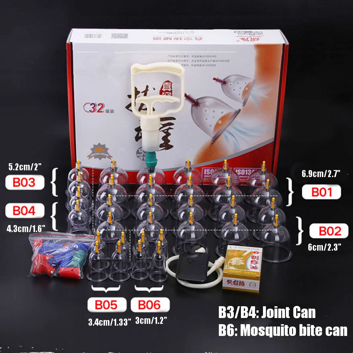 24/32 Cans Cups Chinese Vacuum Cupping Kit Pull;