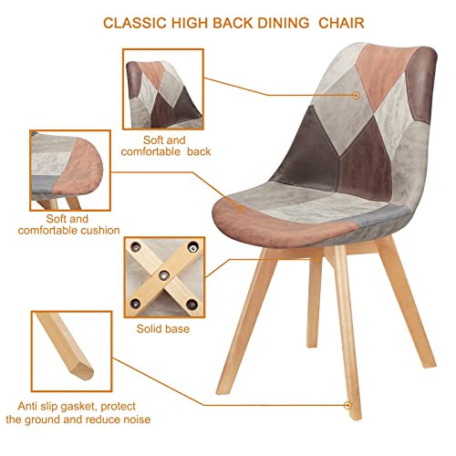 Un set di 2/4/6 sedie imbottite patchwork da pranzo, gambe in legno di faggio naturale, adatte per sala da pranzo, camera da letto, soggiorno, ecc. (rosso+grigio, 6)