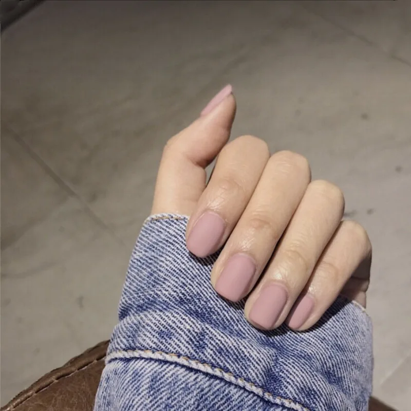 24PCS Matte Pink False Nail Patches Girl Korean Women Manicure Beauty Tool Pure Color Short Square Fake Nails DIY Decoration