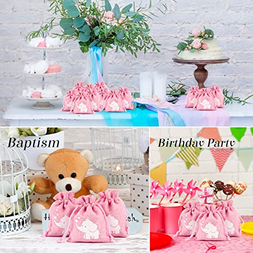 24Pz Sacchetti Battesimo Rosa Bomboniere Portaconfetti Elefante Regalo Addobbi Decorazioni Battesimo Nascita Compleanno Feste Bambina Bimba