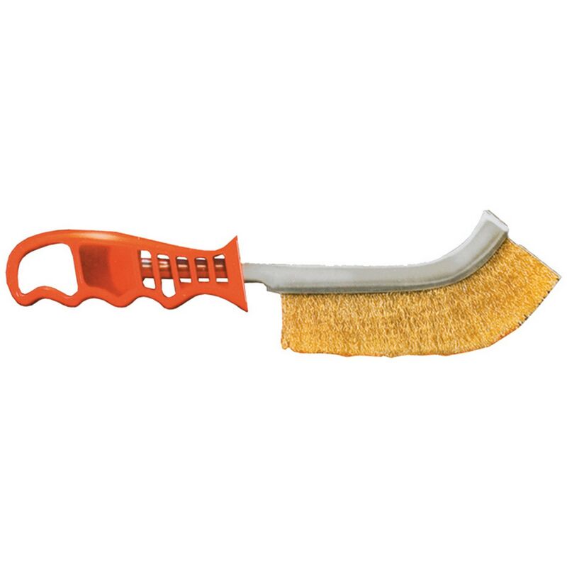 Indicata per sverniciare, pulire, togliere ruggine e residui di saldatura da metalli. fili in acciaio ottonato, dorso metallico. manico in pvc.mm 260 - fili mm 0,3