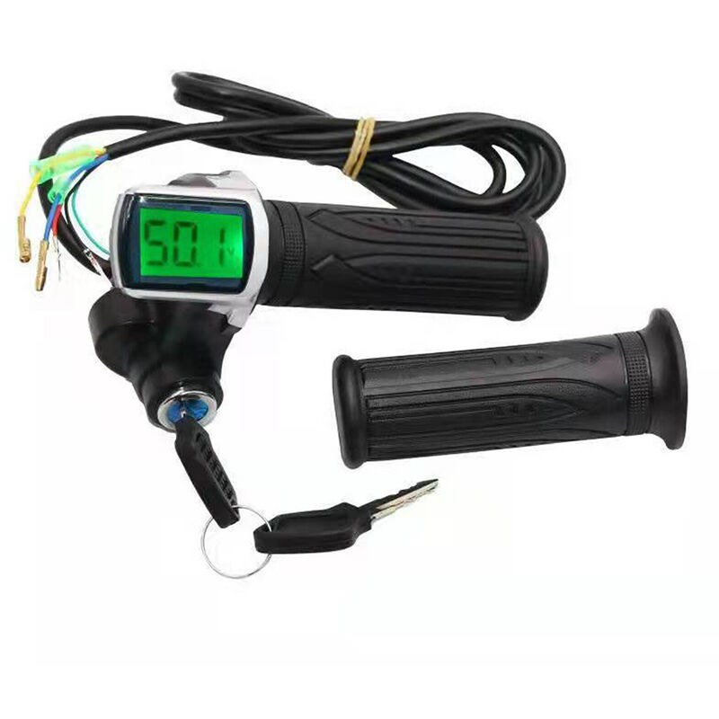 Specifica: Tensione: 24V / 36V / 48V (opzionale) Materiale: ABS + gomma Adatto al manubrio diametro: 22,5 mm / 8,9 pollici Lunghezza del filo: ca. 160 cm / 63,0 pollici Peso: ca. 331 g / 11,7 once Elenco dei pacchetti: 1 paio di manopole dell'acceleratore < br /> 2 * Chiavi