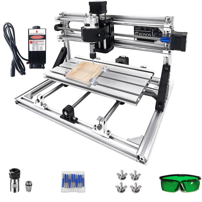 Macchina per Incisione Fai da Te CNC 3018 con Incisore Laser 2500mw Questa macchina per incidere a controllo numerico è un eccellente strumento d'incisione auto-apprendimento a prezzi accessibili che ti consente di provare le tue idee fai-da-te a basso prezzo e senza il rischio di danneggiare apparecchiature costose. Qualità premia Facile da usare Controllo comodo Alte prestazioni Caratteristiche principali 【QUALITÀ PREMIA】 - Realizzata con profili in alluminio 2020 e materiale di stampaggio a iniezione nero per un uso a lungo termine e alta precisione. La corsa di lavoro di questa macchina è 300 (X) x180 (Y) x45 (Z) mm. 【FACILE DA USARE】 - Secondo le istruzioni, la macchina è facile da montare. Basta collegarsi ai computer tramite porta USB e controllato da GRBL. L'incisione laser può essere eseguita con il software Minilaser. Supporta Windows XP SP3, win7, win8, win10, (32/64) e il sistema Linux. 【CONTROLLO COMODO】 - Viene fornito con un'ingegnosa scheda di controllo GRBL, con