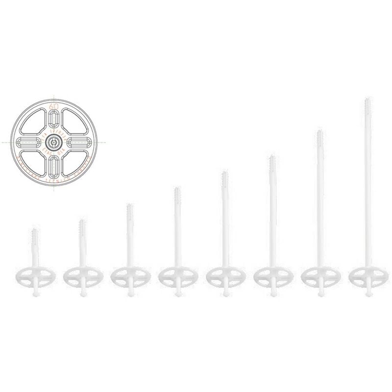 In polipropilene. adatto per pannelli isolanti rigidi e semirigidi. soluzione ideale per fissaggi a secco su calcestruzzo, mattone pieno e forato. testa ø mm. 50, foro ø mm. 10. spessore chiodo ø mm. 6. certificazione eta 12/0334.lunghezza mm 60