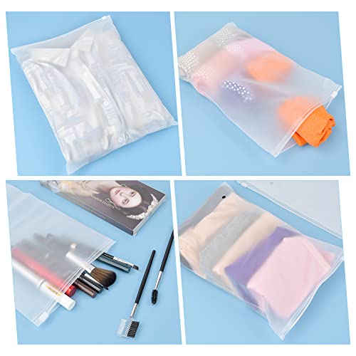 ✿5 diverse dimensioni miste: viene fornito con 25 sacchetti a chiusura lampo in plastica smerigliata in 5 diverse dimensioni, 40 * 30 cm, 35 * 25 cm, 20 * 30 cm, 32 * 22 cm, 25 * 17 cm (5 pezzi per taglia), che possono classificare e organizzare articoli di dimensioni diverse .