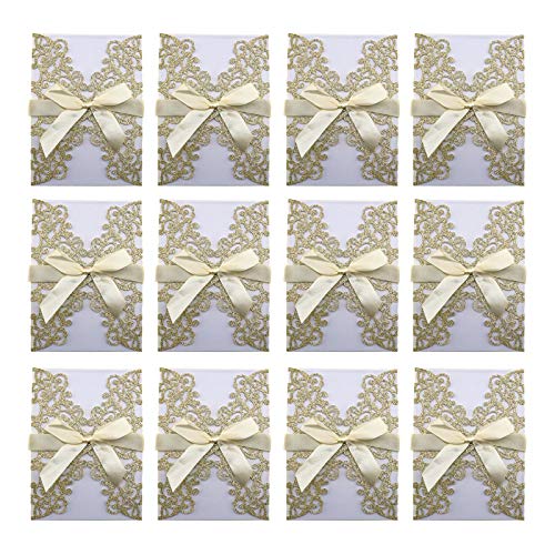 Invito glitter: il design cavo tagliato al laser è delicato ed elegante, ogni nastro con fiocco è con adesivo, molto comodo da usare.