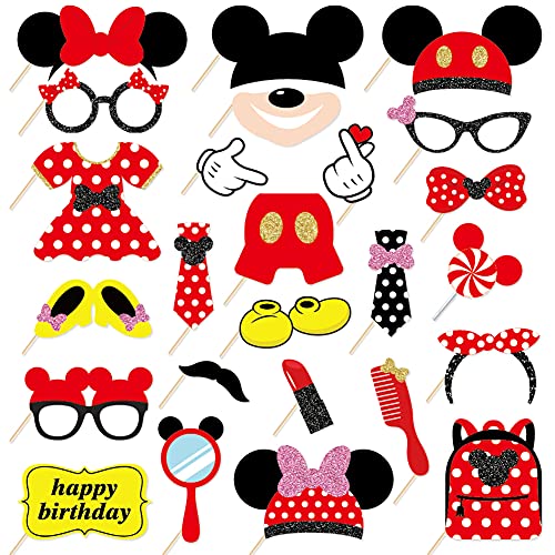 25pcs Mickey Photo Booth Props Con Bastone,Mickey Tema Selfie Props,Forniture Per Feste Di Compleanno Di Topolino,Decorazioni Per Fondali Fotografici
