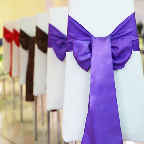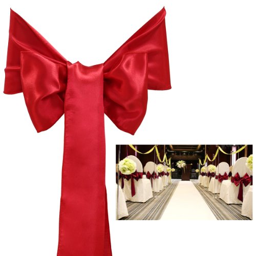 25PCS in Set Satin Chair Cover Bow Sash for Wedding Party Decor Red Color