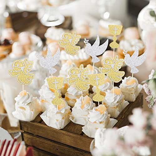 25pz Topper La Mia Cresima Cake Topper Oro Glitter Angelo Piccione Calice Addobbi Cresima per Bambini Decorazione Festa Battesimo Torta Cupcake Partito