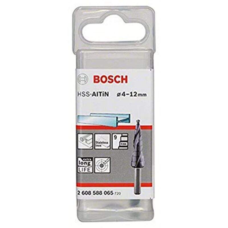 Professionale sottile modifica di quasi tutti i materiali come p.e. non ferrosi, lamiere d' acciaio, plastica o acciaio inox Diametro x Gambo Diametro x Lunghezza complessiva: 4 - 12 x 6 x 66,5 mm Per tutti i trapani con attacco rotondo pecora tbohrer Per gratfreien forare senza forare, trapano, viti di diversi diametri con un entgraten e aufbohren di fori esistenti. Scanalatura a spirale per una lunga durata, meno vibrazioni e rapido Diametro foratura, inoltre markierungen in due Spirali 9 pioli Diametro 4/6/8/10/12/14/16/18/20 mm, rivestimento alluminio nitruro di titanio per una lunga durata Fresa a gradini HSS altin, 3 superfici, gambo, regolazione altezza: 4 mm, Diametro gambo: 6 mm, Lunghezza totale: 66,5 mm, 9 pioli, diametro: 4/5/6/7/8/9/10/11/12 mm, adatto per quasi tutti i materiali sottili come ad esempio non ferrosi, acciaioLamiera, plastica o acciaio inossidabile, senza Preforatura, sferici in lamiere sottili, per sbavare, per fori rotondi, fori di diversi diametri con un