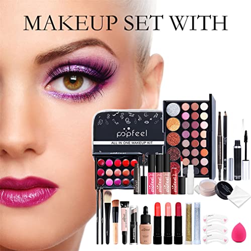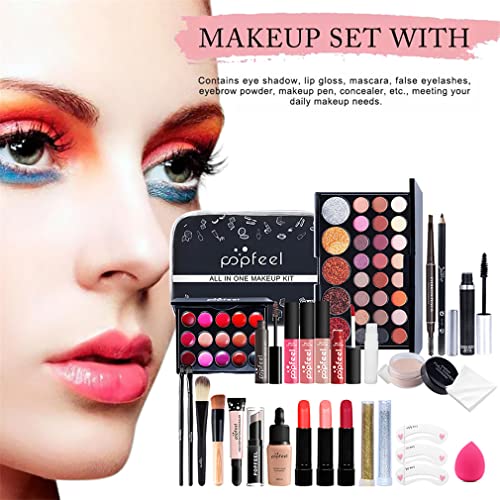 27PCS Set di trucco professionale, scatola di immagazzinaggio dell'organizzatore di trucco da viaggio portatile Regali per ragazze principianti, Set di cosmetici Kit di trucco