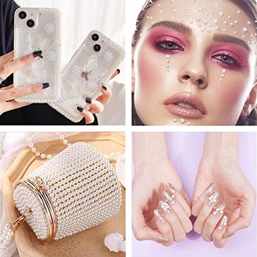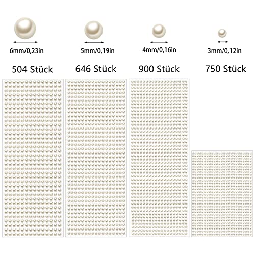 2800 Pezzi Perle Autoadesive, 3/4/5/6 mm Adesivo Perla Piatta, per Gioielli, Abbigliamento, Artigianato e Bricolage, Bianco Sporco