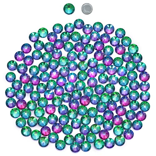 2880 pietre glitterate per il fai da te - Hotfix strass verdi da 2,8 mm rotondi per tessuti, pietre glitterate con superficie adesiva grigia (SS10, vulcano verde)