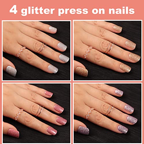 【Ideale:】Le unghie finte corte quadrate sono colorate. Ci sono 3 stili: unghie finte opache, unghie finte glitterate e unghie finte in stile francese. Ci sono 12 colori da scegliere. Sono riutilizzabili e facili da applicare e rimuovere. Sono adatte per casa o salone di bellezza.