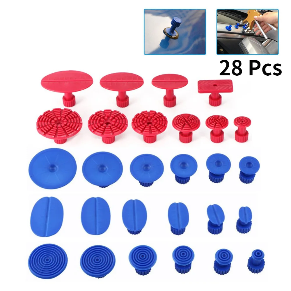 28Pcs Hot Glue Pulling Tabs Car Body Dent Removal Pulling Tabs Paintless Dent Tooth Repair Tools Glue Puller Guide Kit Set
