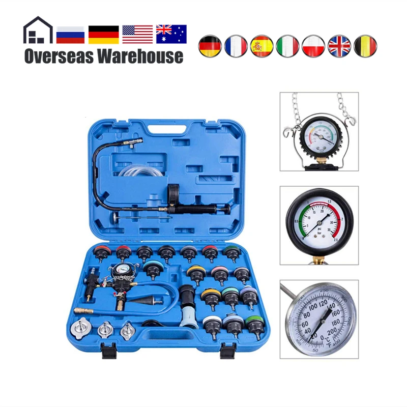 28Pcs Universal Radiator Pressure Tester Set Vacuum Type Cooling System Test Water Tank Leak Detection Detector Tool