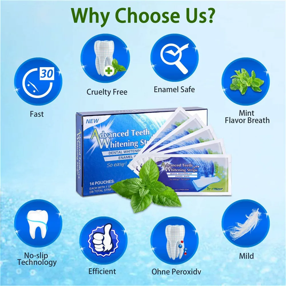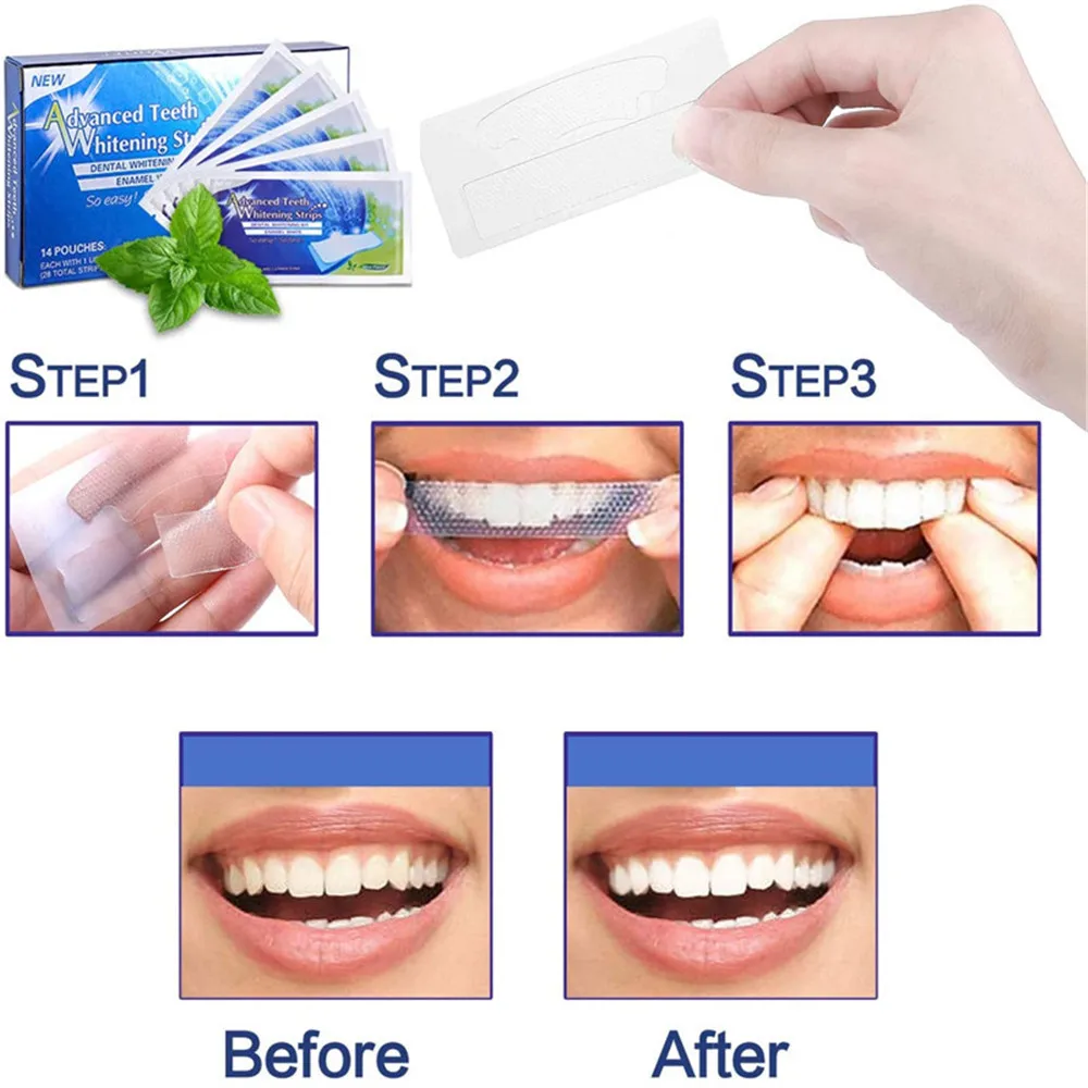 28Pcs/14Pairs Advanced Teeth Whitening Strips Stain Removal for Oral Hygiene Clean Double Elastic Dental 3D Gel Bleaching Strip