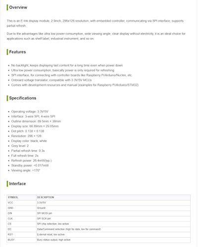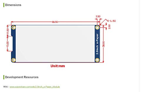 Comes with development resources and manual (examples for Raspberry Pi/Jetson Nano/Arduino/STM32),download resources: www.waveshare.com/wiki/2.9inch_e-Paper_Module