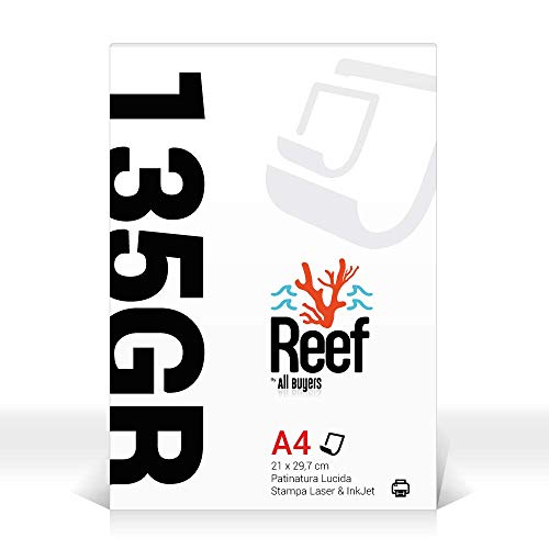 2AINTIMO Carta 135gr DIN A4 - Carta Patinata Lucida 135 grammi - Stampanti Laser e Inkjet - Cartoncino BIANCO 21x29,7 cm A4 - Ufficio, Stampa, Fotografia, Hobbies, compatibile con ogni stampante (1)