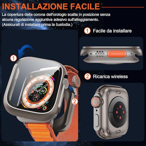 ⌚【Design Creativo】Questa protezione dello schermo Apple Watch Serie 9 8 7 45mm presenta un design esterno unico, proprio come l'ultimo orologio, come l'ultimo modello, rende il tuo per Apple Watch Series 8 45mm / Series 7 45mm / Series 9 45mm simile a un iWatch Ultra. Fai sembrare il tuo orologio fantastico.