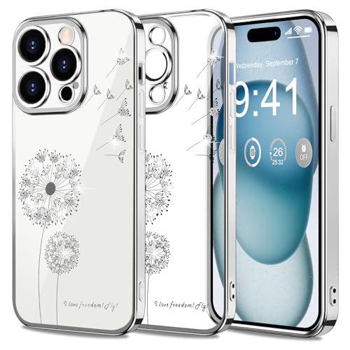 2Buyshop Custodia originale per iPhone 15 Pro Max, in silicone trasparente, con dente di leone, motivo floreale, per iPhone 15 Pro Max, antigraffio, sottile, custodia protettiva per iPhone 15 Pro Max