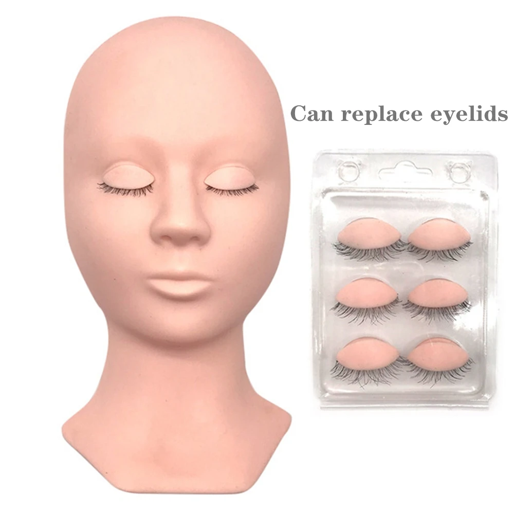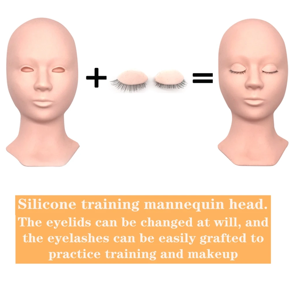 2Colors Mannequin Head Replacement Eyelids Soft Silicone Practice False Eyelash Extensions Makeup Model Massage Training Manikin