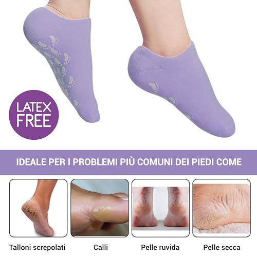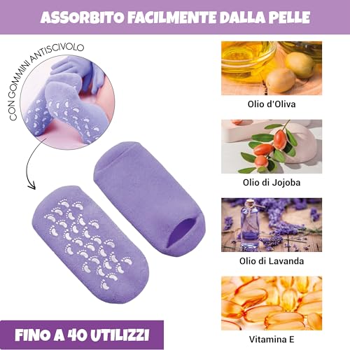2EASY - Maschera Piedi Calze in Gel Idratante Unisex, fino a 40 utilizzi, con Vitamina E, Olio d'Oliva, Rosa e Jojoba, con antiscivolo, taglia unica, ripara e ammorbidisce la pelle (Lavanda)