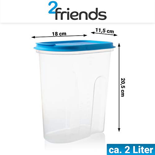 2friends GmbH - Set di 3 contenitori per alimenti, con coperchi pieghevoli, 2 litri, dimensioni ideali come dispenser per cereali, per cornflakes o contenitori per alimenti, con 3 adesivi per scrivere