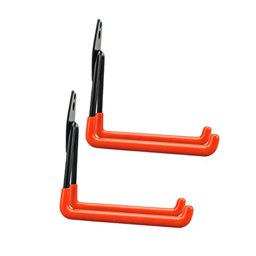 Wall mounted hooks: garage ladder storage rigid and multiple screw holes design stability and strength.