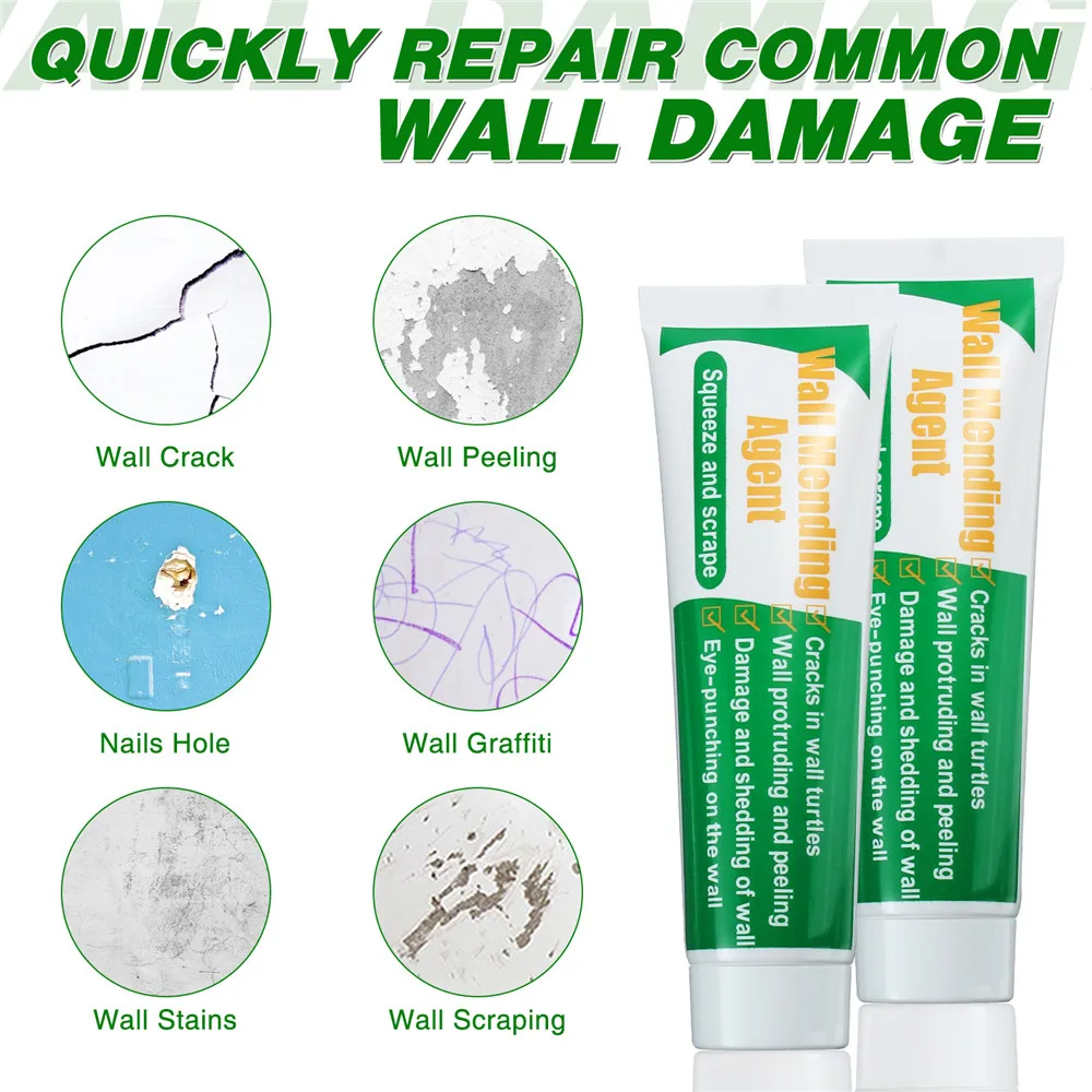 2pcs 100g Wall Mending Agent Wall Repair Cream Wall Adhesives Crack Nail Repair Agent Walls Peeling Gap Repair Paste + Scraper